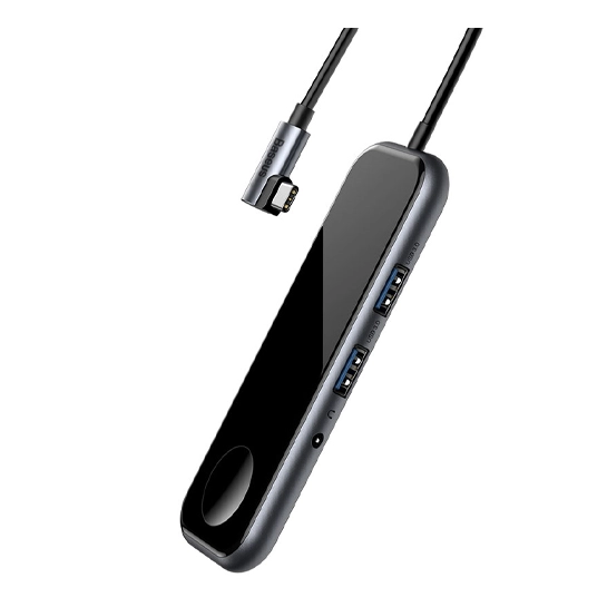 Baseus Mirror Series Multifunctional Wireless Charger USB-C представляет собой гибрид USB-концентратора и беспроводного зарядного устройства для смарт-часов Apple Watch. Он оснащен двумя портами USB-A с поддержкой стандарта 3.0, разъемом HDMI для подключения дополнительного дисплея, поддерживающим вывод изображения в 4K, и аудиоинтерфейсом 3.5 мм и сквозным портом USB Type C с поддержкой технологии быстрой зарядки Power Delivery 60 Вт. Девайс позволит расширить возможности вашего ноутбука, оснащенного всего одним разъемом USB-C, а также выполнить быструю подзарядку часов индукционным способом.