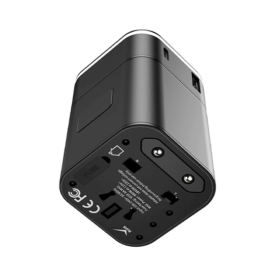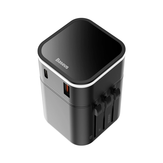 Baseus Removable 2in1 universal travel adapter PPS Quick Charger Edition - универсальный сетевой адаптер-переходник с интерфейсами USB и Type C. Обладает возможностью подключать любые виды штекеров (вилок) ко всем существующим типам розеток. Умеет работать в качестве сетевого зарядного устройства с функцией быстрой зарядки (18Вт) для iPhone - PD3.0 и Android смартфонов - Qualcomm Quick Charge QC3.0