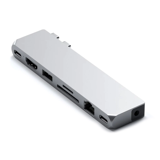 Satechi Pro Hub Max — ваш лучший компаньон для MacBook Pro 2021 года. Благодаря полнофункциональному порту USB-C PD, выходу 4K HDMI, Gigabit Ethernet, данным USB-C, данным USB-A, устройствам для чтения карт micro/SD и порту аудиоразъема концентратор предоставляет множество портов, чтобы вы могли работать в полной силе. Благодаря двойному разъему USB-C и современной алюминиевой отделке Pro Hub Max надежно подключается к вашему Mac, обеспечивая аккуратную и стильную настройку. Просто подключи и работай, чтобы получить максимум удовольствия от MacBook Pro 2021 года.