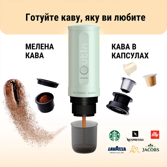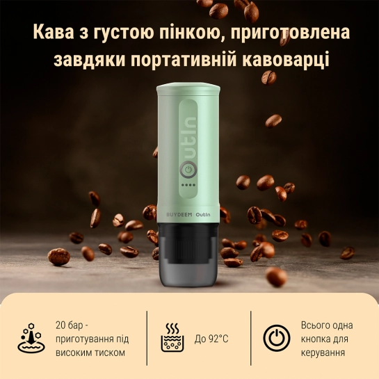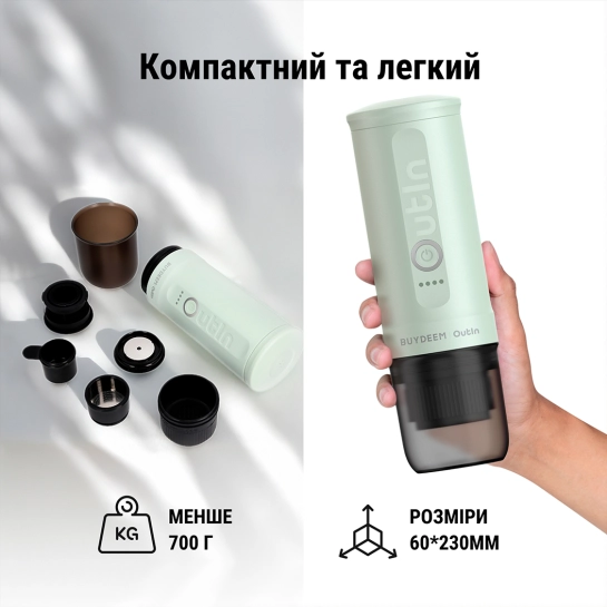 Описание Аккумуляторная портативная кофеварка Outin X Buydeem Cozy Greenish (OTEM-01-CG)