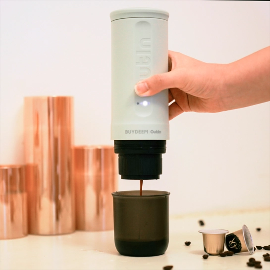 Портативная кофеварка Outin предназначена для удовлетворения всех ваших предпочтений по кофе. Она поддерживает как кофейные капсулы, так и молотый кофе, придавая вам гибкость в выборе лучшего метода заваривания. Кофемашина оснащена мощным аккумулятором емкостью 7500 мАч, позволяющим заваривать до 5 порций холодной воды или более 200 порций горячей воды на одной зарядке. Такая емкость аккумулятора гарантирует вам достаточно энергии, чтобы наслаждаться любимыми кофейными напитками в течение дня.