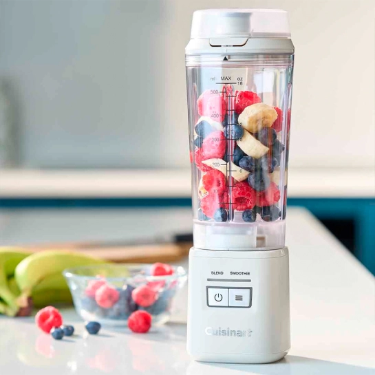 Представляем Cuisinart Blast & Go — наш самый мощный портативный блендер, созданный для активного образа жизни и высокой производительности. Будь вы в спортзале, в дороге или готовите быстрый завтрак дома — этот стильный, высокоэффективный блендер обеспечит свежие, вкусные смеси менее чем за 30 секунд.