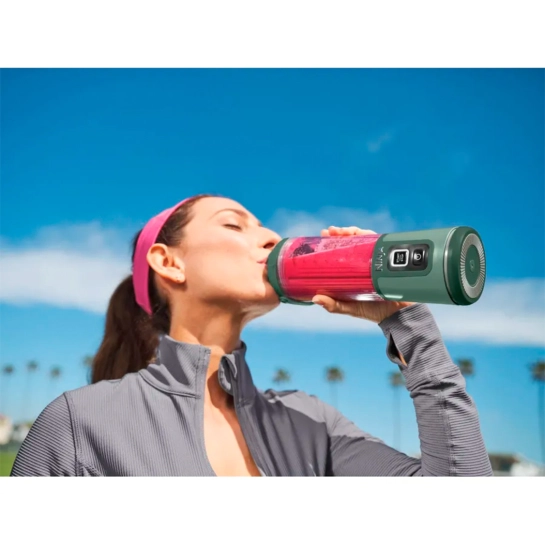 На бутылке есть удобная мерная шкала для точного измерения ингредиентов. Минимальный и максимальный уровень наполнения жидкостью также указаны отдельными метками. Дополнительный комфорт создает светодиодная подсветка кнопки, которая информирует вас о состоянии батареи и режиме работы лезвия. Эта интеллектуальная система позволяет вам эффективно контролировать работу блендера и получать изысканные напитки.
