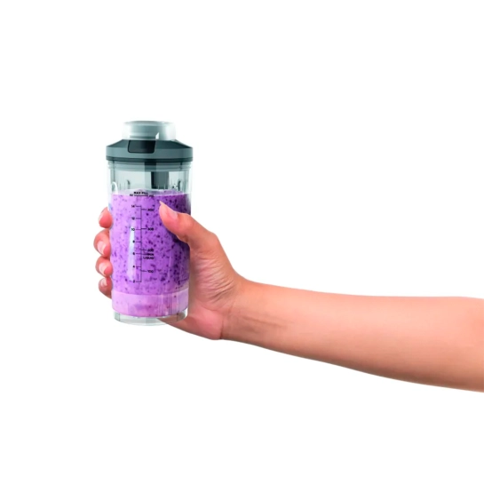 С блендером Ninja Blast MAX вы не зависите от кухни – съемная чаша Twist & Go делает приготовление напитков удобным и мобильным. Герметичная крышка защищает девайс от протекания, а дополнительная ручка удобна для транспортировки. Берите свежеприготовленный смузи на работу, в спортзал или просто в дорогу. Прочный материал чаши выдерживает активное использование, а ее оптимальный объем 570 мл с мерной шкалой идеально подходит для одной порции полезного напитка. Готовьте, закрывайте крышку – и наслаждайтесь вкусом где угодно!
