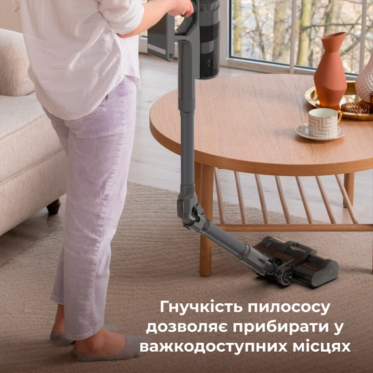 Гибкость пылесоса позволяет убирать в труднодоступных местах