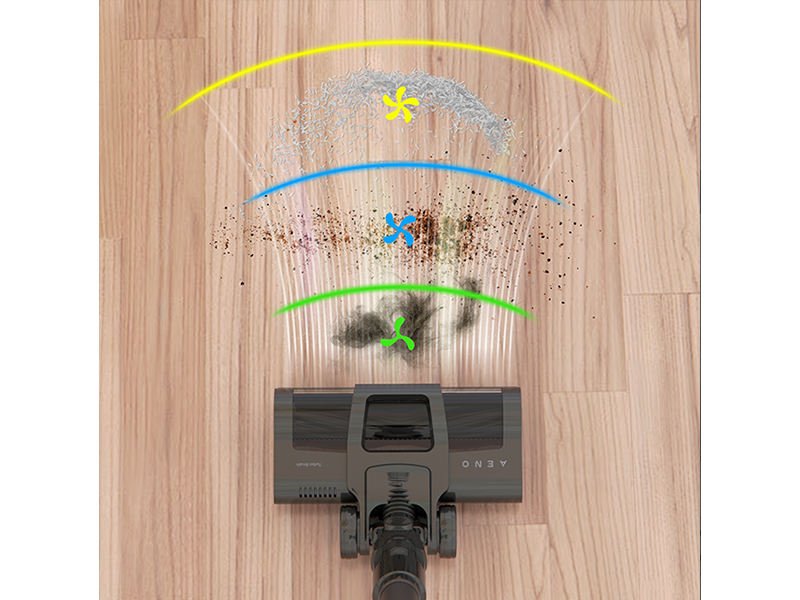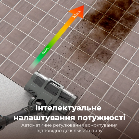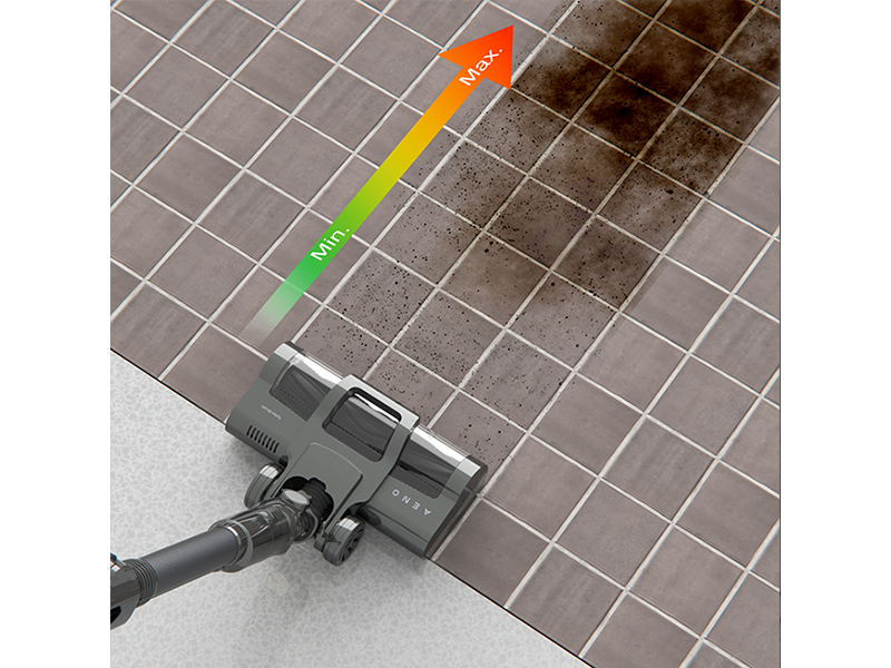 Сила всасывания автоматически адаптируется к количеству пыли. Чем больше частиц на поверхности – тем больше мощность всасывания.