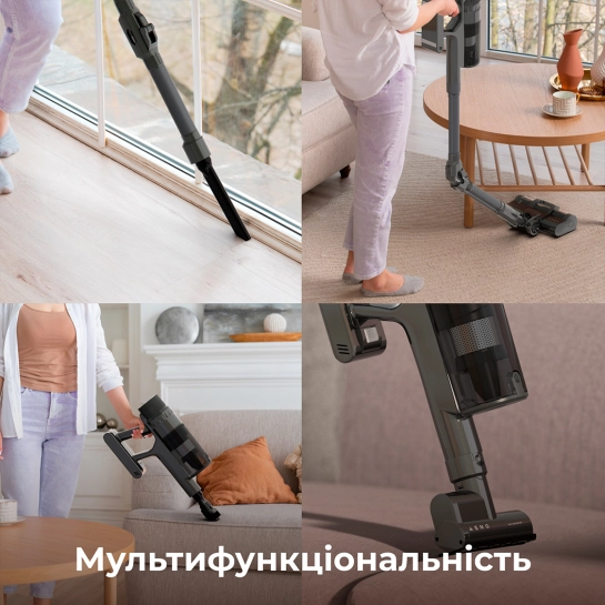 Компактный ручной пылесос можно использовать для уборки мебели или труднодоступных мест и всех типов полов благодаря разнообразным аксессуарам, входящим в комплект.
