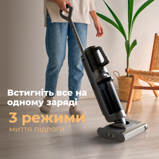 Выбирайте из 3 режимов при уборке пола с помощью трансформера: 2 уровня влажной уборки и один сухой, подходящих для любых поверхностей и загрязнений. Легко переключайтесь между режимами и определяйте, как и когда производить уборку.