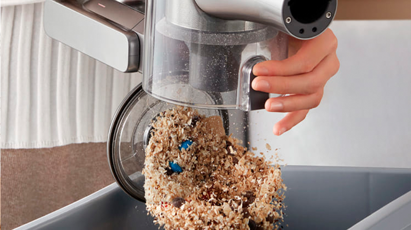 Контейнер для сбора пыли и грязи легко опорожняется одним нажатием, что обеспечивает удаление собранного мусора самым легким способом. Благодаря вместительному пылесборнику объёмом 0.6 л обеспечивает максимально качественную и длительную уборку каждого уголка Вашего дома.