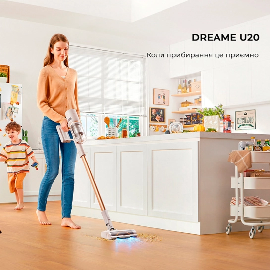 В его стильный дизайн сложно не влюбиться с первого взгляда. Но даже если этого не произойдет— Dreame U20 покорит практичностью. Без удлинительной трубки пылесос становится супер компактным. Так вы сможете использовать насадку 2-в-1 с твердой щетиной для очистки полок, кухонных поверхностей, углов и щелей.