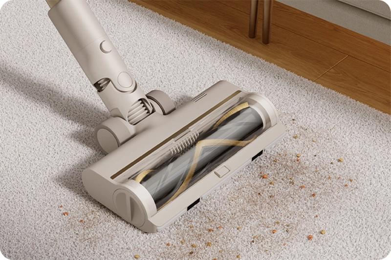 Дизайн щетки с V-образными вырезами разработан для тщательного захвата мусора. Благодаря расположению всасывающих каналов по краям, Dreame U20 очищает комнату от угла до угла и легко собирает пыль вдоль стен. Комбинированная щетка имеет переключатель. Включив его, проще пропылесосить ковры или собрать массивный мусор вроде поп-корна.