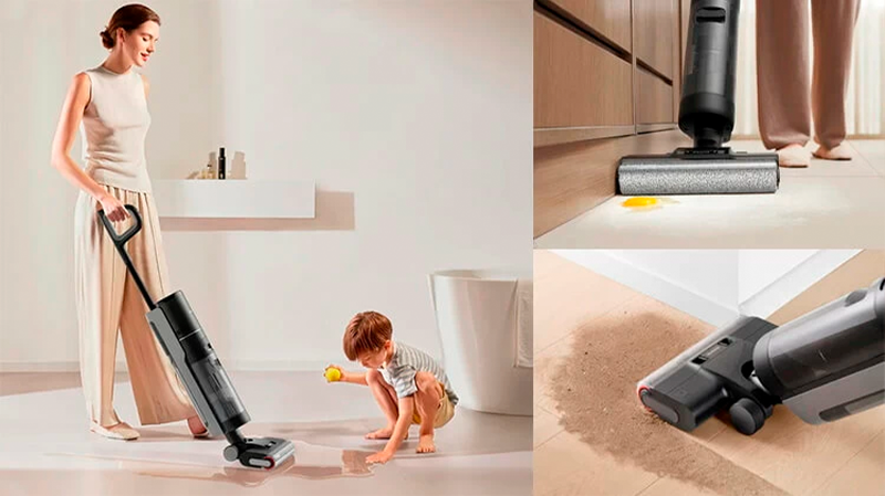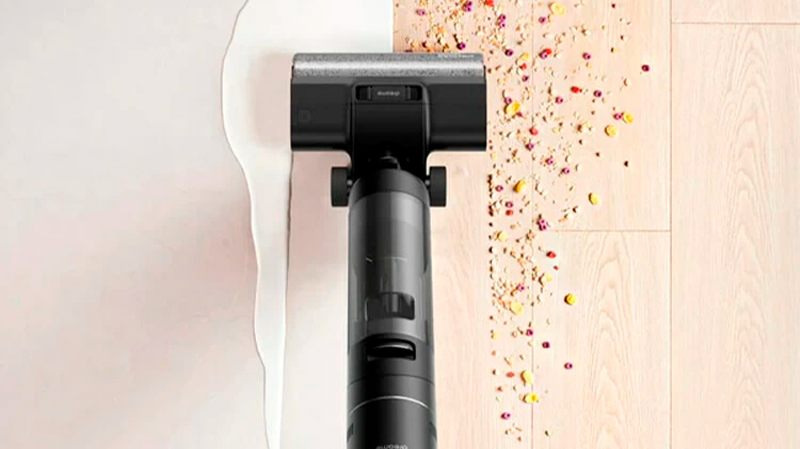 Дизайн пылесоса Dreame Wet&Dry H12 — мега практичный. Он позволяет не только доставать до труднодоступных мест, но и безупречно вытирать любую грязь. Потому даже столкнувшись с засохшим пятном от кофе или свежеразбитым яйцом, девайс не оставит после себя разводов.