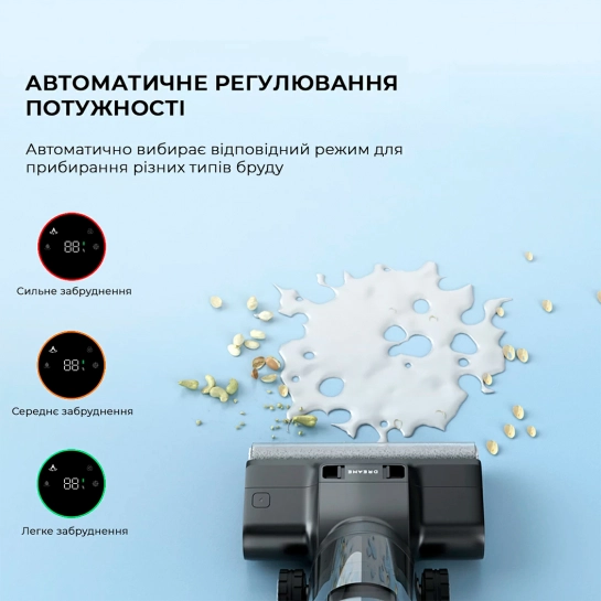 Задача Dreame H13 PRO — сделать пол чистым, а уборка скорым. Благодаря мощности 18 000 Па вы можете очистить любое жесткое покрытие, паркет, линолеум или плитку. Пилотяг извлекает мусор из напольных щелей и не оставляет пропущенных зон. На выбор есть 4 режима: автоматический, всасывание жидкостей, ультра- и турбо-режим.