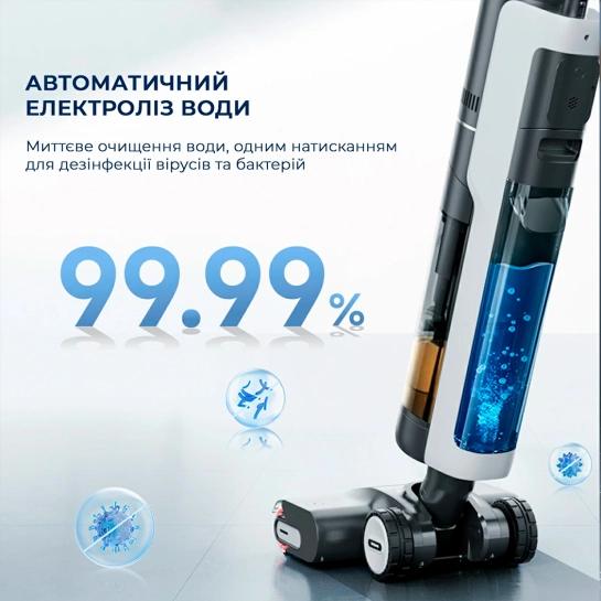 Готовы к лайтовой уборке? С Dreame H13 PRO вы уберете пол вдвое быстрее, ведь моющий пылетяг одновременно впитывает мусор и моет поверхность от грязи. А еще может одним движением собрать пролитую воду или сок. Помощник работает 45 минут от одного заряда и очищает пространство более тщательно, ведь насадка лишена рамок. Устраняйте аллергены прямо во время сеанса – встроенный генератор выпускает ионы серебра, которые уничтожают вредные бактерии на поверхности пола.