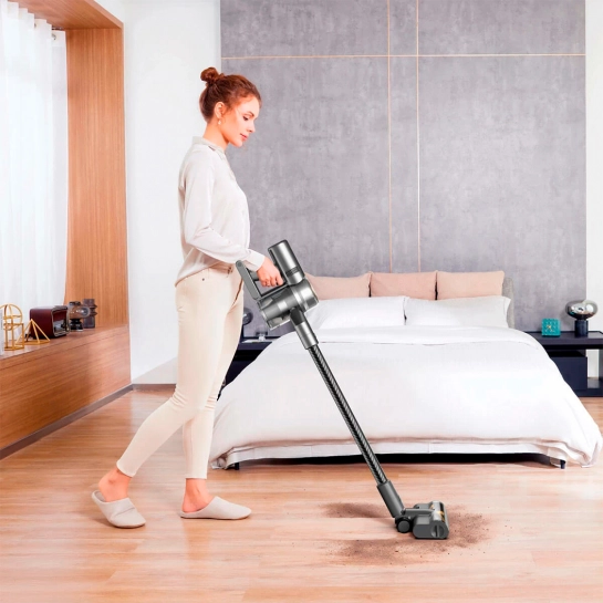 Вес беспроводного пылесоса сбалансирован таким образом, чтобы пользователю было удобно убирать труднодоступные места. Вы можете без труда поднимать и наклонять пылесос для удобства использования.