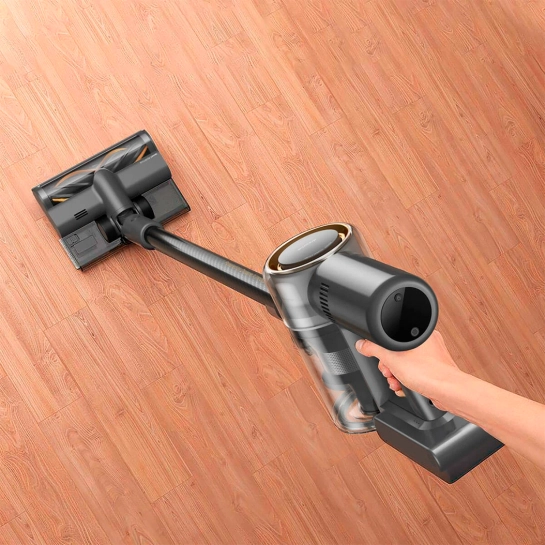 В автоматическом режиме работы Dreame V12 Pro увеличивает мощность всасывания при обнаружении ковров. V-образная конструкция щетки предотвращает запутывание волос. Обеспечивается тщательное очищение пола.