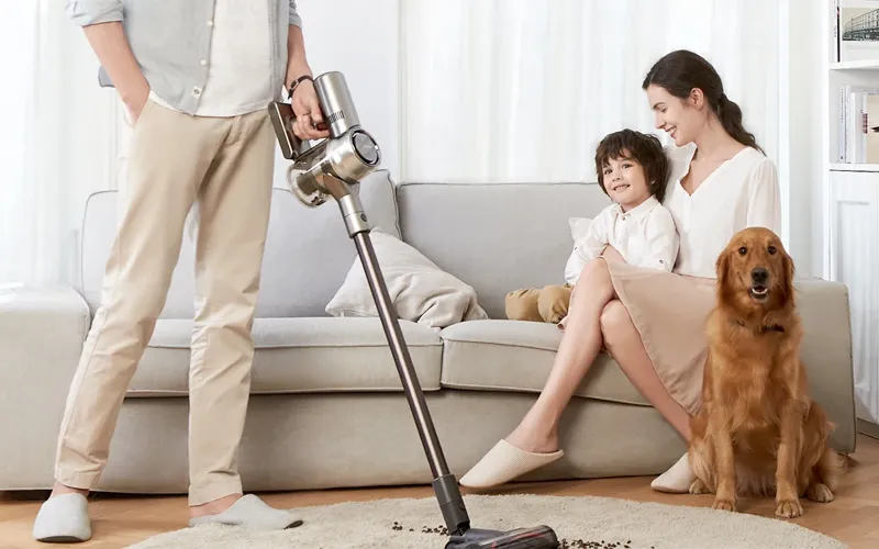 Пылесос оснащен вращающейся щеткой, которая тщательно убирает все виды грязи и дополнительно защищает пол от царапин. Он может определять тип поверхности, которую пылесосят, и соответствующим образом регулировать мощность. Кроме того, V-образный валик сделает чистку ковров более приятной. Прибор проникает в его волокна, предотвращая попадание волос. V12 также станет отличным решением для владельцев домашних животных, которые будут избавлены от проблем с вездесущей шерстью.