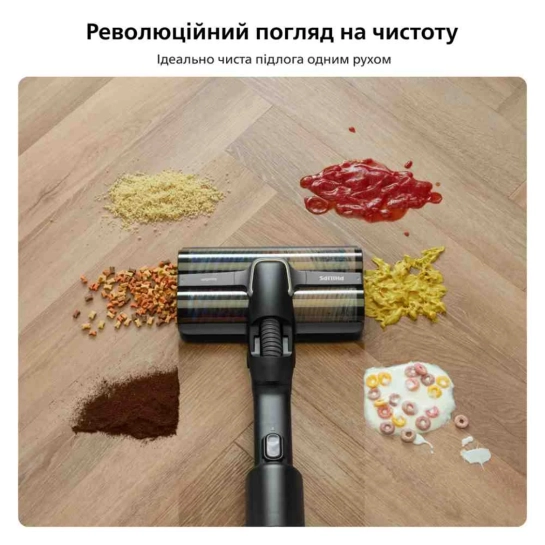Убирает влажную и сухую грязь за один раз, оставляя идеально вымытый пол. Не нужно предварительно пылесосить.