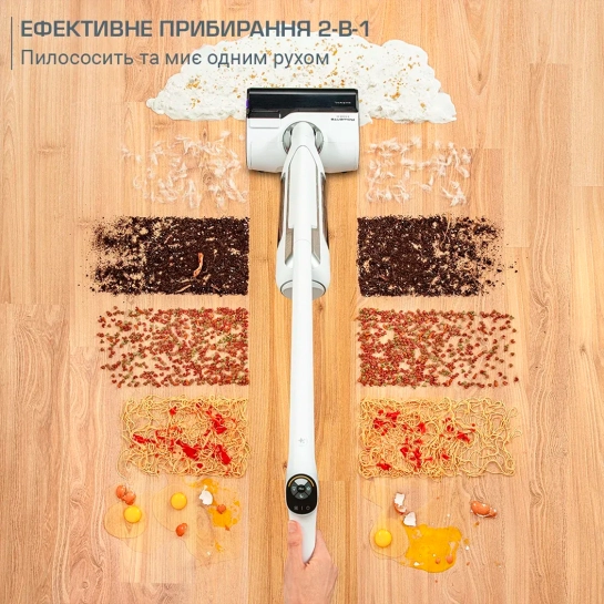 Откройте для себя универсальный беспроводной пылесос «все в одном», пылесосящий, моющий за один проход.