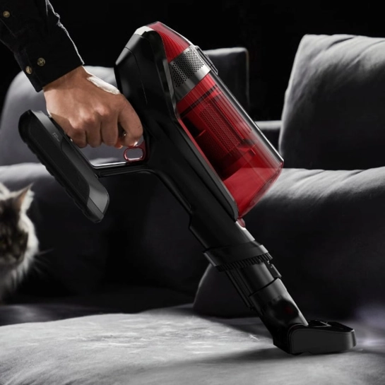 Беспроводная уборка, мощная впитываемость до 150 Вт, долговечная батарея со временем работы до 70 минут и 99.9% фильтрации мелкой пыли, аллергенов и пылевых клещей.