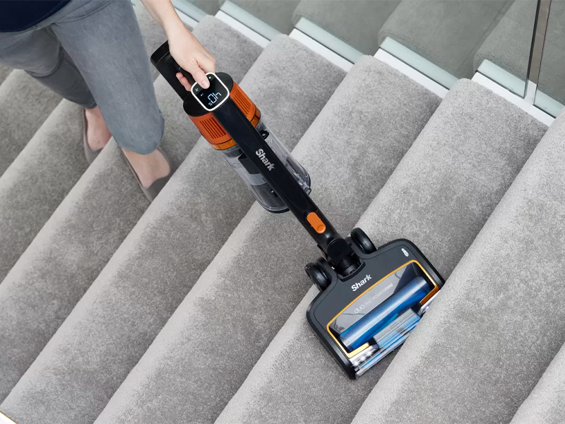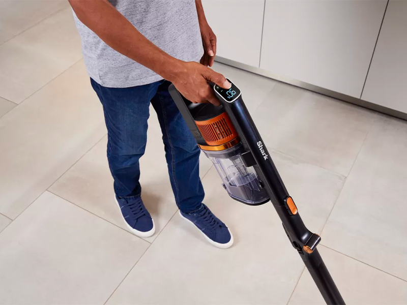 Пылесос Shark получил умный светодиодный экран, показывающий силу всасывания, состояние батареи, выбранный тип покрытия и многие другие полезные настройки. Выбирайте один из нескольких режимов (эко, глубокая очистка и турбо), переключайтесь между функциями и следите за тем, сколько осталось заряда аккумулятора.