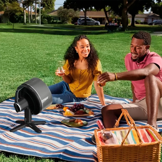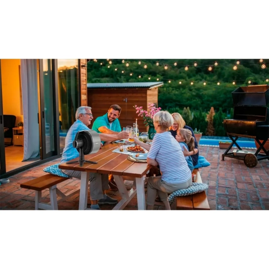 Когда слишком жарко дома или во дворе, Shark FlexBreeze FA150EU создает свежее, комфортное пространство. Вентилятор можно включать на кухне, в комнате, на балконе или в палатке. Девайс работает как от сети, так и автономно, так что даже поездки на природу будут наполнены приятной атмосферой охлаждения. Лето в городе, жара в помещении, душный офис — устройство везде помогает дышать свободно. Пять уровней скорости, движение в двух плоскостях, охват до 20 метров помогут без кондиционера контролировать температуру. Вентилятор не гудит, не раздражает, а просто тихо выполняет свою работу. А если вдруг начнется дождь или солнце, система не будет повреждена. Стильный дизайн и ремешок гармонично интегрируются в ваш быт. Вентилятор можно нести с собой так же просто, как бутылку воды.