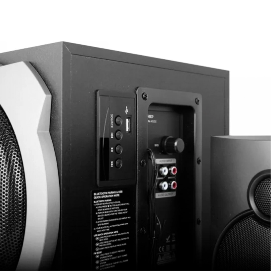 Основой системы F&D A-521X является её 2.1-канальная конфигурация, которая включает две колонки и сабвуфер, общей мощностью 52 Вт. Впечатляющий 6,5-дюймовый сабвуфер, выполненный из прочного материала MDF, обеспечивает глубокую и насыщенную басовую составляющую, улучшая звучание любимых треков или кинематографических эффектов. Дополнительно, каждая из колонок оснащена 4-дюймовыми динамиками, обеспечивающими кристально чистое воспроизведение средних и высоких частот.