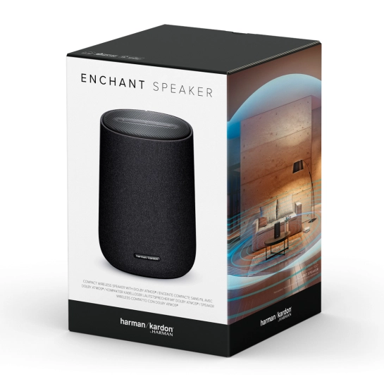 Беспроводная колонка Harman Kardon Enchant обеспечит захватывающий 3D-звуковой опыт с Dolby Atmos Music. Направленные под углом боковые и направленные вверх динамики создают звук с ощущением высоты для эффекта полного погружения.