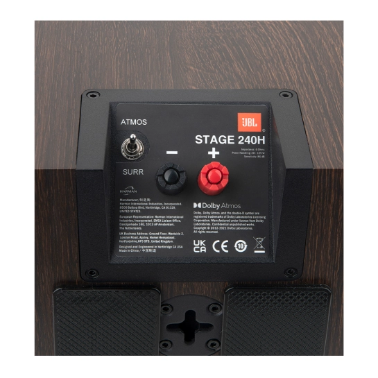 Модули высоты 240H с поддержкой Dolby Atmos оснащены теми же сабвуфером и рупором, что и полочная модель 240B. Они легко подключаются с помощью монтажных клемм в верхней задней части обеих напольных моделей или каналов объемного звучания, которые можно закрепить на стене или потолке.