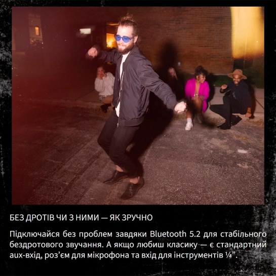 Крепление для штатива и ручки для переноски упрощают транспортировку, а кнопки диджейских эффектов придают энергии атмосфере.