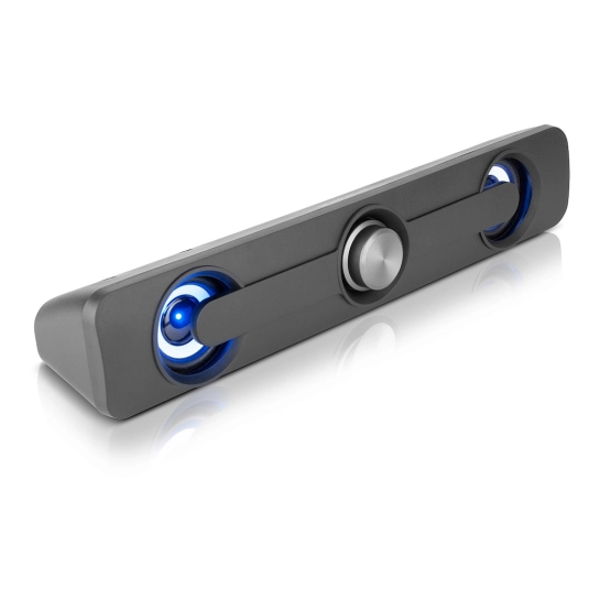 Саундбар оснащён всеми необходимыми интерфейсами для подключения — встроенные сигнальные кабели позволяют подключать устройство практически к любым источникам аудиосигнала: компьютерам, ноутбукам, телевизорам, медиаплеерам и другим устройствам. Питание осуществляется через стандартный USB-порт (5V DC), что избавляет от необходимости использования отдельного блока питания и делает устройство мобильным и удобным в эксплуатации.