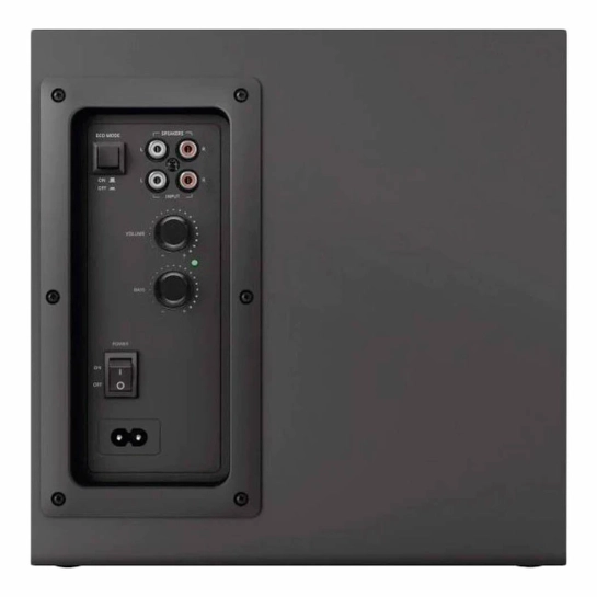Материал корпуса из пластика делает колонки легкими, но при этом прочными, что обеспечивает их долгий срок службы. Размеры колонок составляют 154 х 115 х 75 мм, а сабвуфера — 240 х 180 х 180 мм, что позволяет компактно разместить их в любом помещении. Общий вес системы составляет 3,72 кг, что делает ее достаточно мобильной для перемещения в пределах вашего дома.