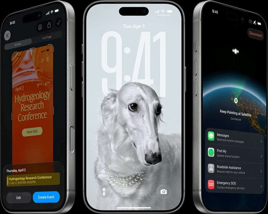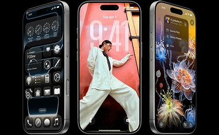 Новый дизайн iOS с эффектом "Жидкое стекло", который отражает и преломляет содержимое в реальном времени. Более яркий экран блокировки с динамической адаптацией времени к фоновому изображению и уведомлениям. Дополнительные функции включают скрининг звонков, помощь при ожидании и опросы в Сообщениях.