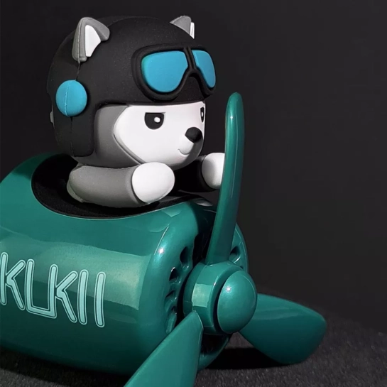 Ароматизатор выполнен в виде забавного хаски, пилотирующего аэромобиль с вращающимся пропеллером. Эта стилизация не только выделяется в интерьере автомобиля, но и делает аксессуар настоящим украшением. Подвижные элементы оживляют внешний вид и создают ощущение движения и свежести.