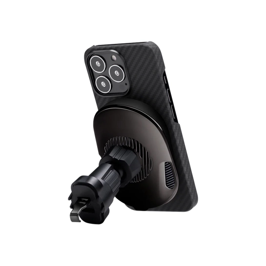 Благодаря сочетанию арамидного волокна и ТПУ автомобильное крепление MagSafe имеет текстурированную поверхность, которая помогает надежно удерживать телефон на месте.