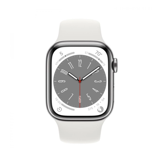 Описание Б/У Смарт-часы Apple Watch 8 + LTE 41mm Silver Stainless Steel Case with White Sport Band (Отличное)