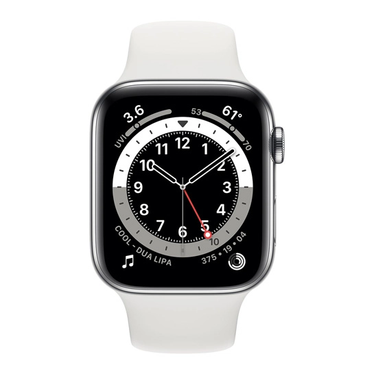 Описание Б/У Смарт-часы Apple Watch Series 6 + LTE 44mm Silver Stainless Steel Case with White Sport Band (Отличное)