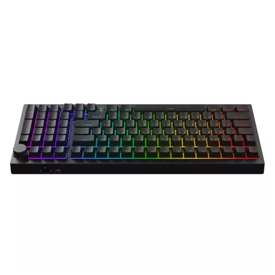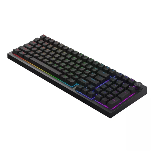 Имеет ролик регулировки громкости, сменные переключатели, регулируемая RGB-подсветка с разными режимами и цветами. Клавиатура оснащена технологией Hot-Swap, позволяющей менять свечи на желаемые.