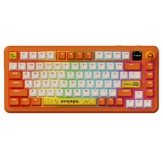 Клавиатура оснащена линейными механическими переключателями с возможностью горячей замены, дисплеем, колесом прокрутки и полноценной RGB-подсветкой. Поддерживается полный NKRO, обеспечивающий точное распознавание всех нажатий. Совместима с ОС Windows, Linux и iOS.