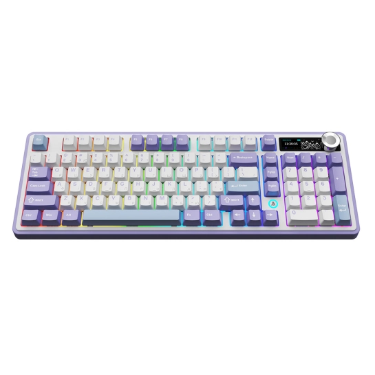 Клавиатура оснащена линейными переключателями с возможностью горячей замены, дисплеем и колесом прокрутки. RGB-подсветка создаёт эффектную атмосферу, а технология NKRO обеспечивает точное срабатывание всех нажатий без залипаний.