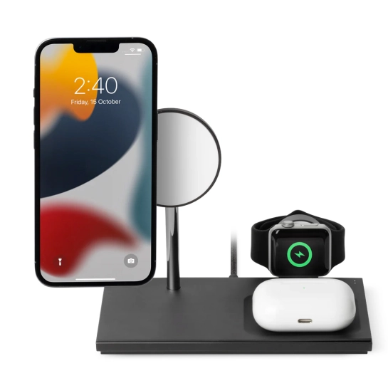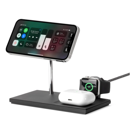 Магнитное беспроводное зарядное устройство Snap 3-в-1, созданное как единственное зарядное устройство, которое вам когда-либо понадобится, открывает еще более высокие уровни повседневной мощности для вашего iPhone, AirPods, а теперь, благодаря съемной шайбе, и для ваших Apple Watch.