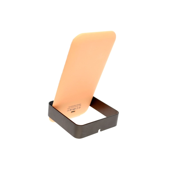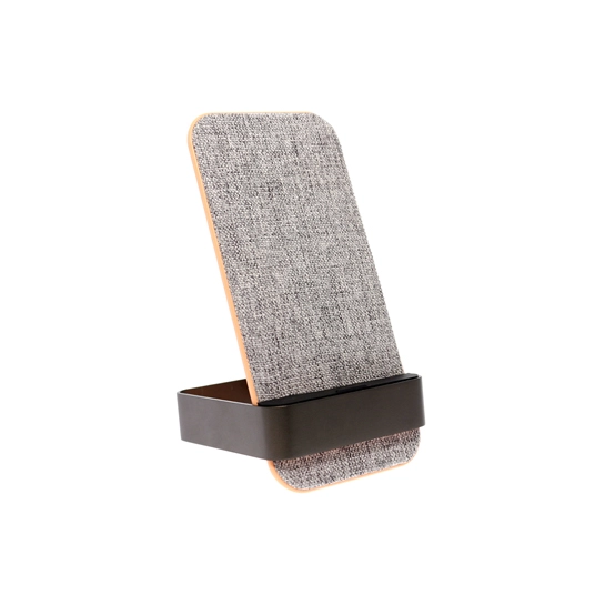 Имеет компактные габариты и выглядит как удобная подставка. Позволит поставить смартфон в вертикальное положение, что даст возможность держать технику на рабочем столе организовано и избавить рабочее пространство от лишних кабелей. Вам не нужно будет искать смартфон в куче документов, если придется быстро собираться или отвечать на звонок. Также устройство будет держать гаджет под углом, который удобно подходит для просмотра фильмов, видео, веб-страниц. В случае общения в видео-чатах, смартфон не придется держать в руке. При этом он будет заряжаться, что удобно для пользования в течение рабочего дня. Покрытие подставки изготовлено из ткани, которая приятна на ощупь и не поцарапает корпус гаджета. Нижняя панель имеет прорезиненную вставку, которая не дает зарядному устройству скользить по поверхности.