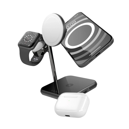 - Беспроводная зарядная станция 4-в-1 MagSafe+Watch позволяет поддерживать заряд всех ваших устройств Apple;