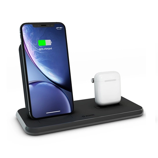 Данное зарядное устройство предназначено для одновременной зарядки iPhone и AirPods (или второго iPhone). Также предусмотрен встроенный USB-порт, который позволяет заряжать третье устройство. Это док-станция отлично подойдет для дома или офиса, где постоянно необходимо заряжать устройства Apple.