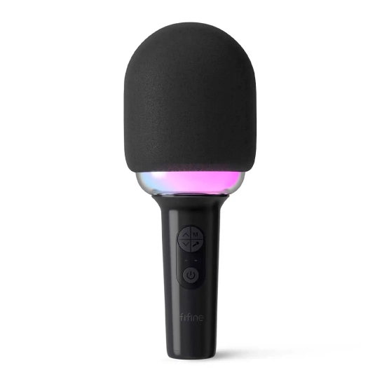 FIFINE E2P Беспроводной микрофон для караоке – стильный и компактный микрофон, оснащенный встроенным динамиком, что обеспечивает достаточно громкий звук для яркого исполнения вашего вокального голоса. Благодаря суперкардиоидному шаблону, окружающие шумы не помешают вашим выступлениям. Сделайте ваши караоке-вечера еще более увлекательными с четырьмя режимами RGB-освещения, которые создадут атмосферу яркого шоу, как вы на сцене. FIFINE E2P – это идеальный выбор для детей и взрослых, чтобы подарить себе и своим близким незабываемые моменты караоке-радости.