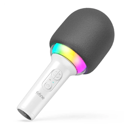 FIFINE E2P Беспроводной микрофон для караоке – стильный и компактный микрофон, оснащенный встроенным динамиком, что обеспечивает достаточно громкий звук для яркого исполнения вашего вокального голоса. Благодаря суперкардиоидному шаблону, окружающие шумы не помешают вашим выступлениям. Сделайте ваши караоке-вечера еще более увлекательными с четырьмя режимами RGB-освещения, которые создадут атмосферу яркого шоу, как вы на сцене. FIFINE E2P – это идеальный выбор для детей и взрослых, чтобы подарить себе и своим близким незабываемые моменты караоке-радости.