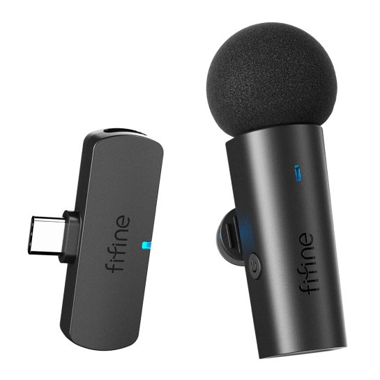 Fififne M6 – универсальный петельный беспроводной микрофон, совместимый с телефонами Android через USB Type-C порт и с iPhone через переходник. Автономное время работы до 6 часов без перерыва.