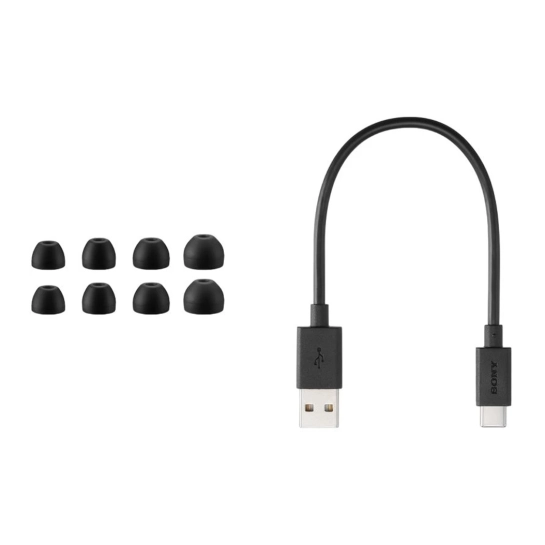 В комплекте с гарнитурой INZONE Buds вы также найдете зарядный кабель USB-C (1.5 м), USB-трансивер и силиконовые амбушуры 4 размеров.