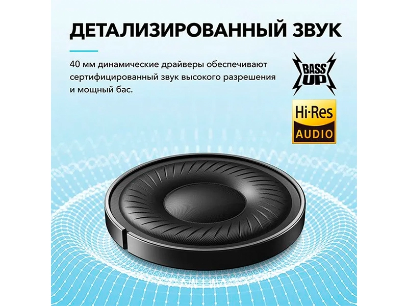 Наушники с функцией шумоподавления имеют большие 40-миллиметровые динамические драйверы, которые воспроизводят детализированный звук и низкие частоты с помощью технологии BassUp. Совместимость с сертифицированным аудио в формате Hi-Res при подключении с помощью кабеля AUX для еще большей детализации.