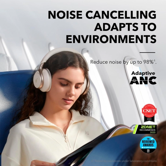 Наушники Anker SoundCore Space One оснащены передовой технологией адаптивного шумоподавления, сокращающей уровень окружающего шума до 98%. Эта усовершенствованная система позволяет погрузиться в музыку, изолируя вас от внешних помех, что делает их идеальными для использования в шумных условиях, будь то на улице, в транспорте или в офисе. Вы сможете наслаждаться чистым звуком в любой обстановке.